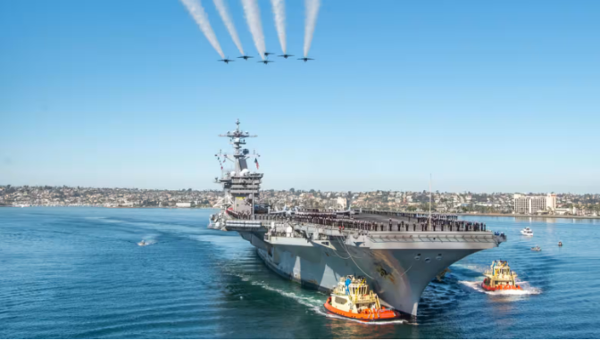 Các tàu sân bay từ lâu đã là biểu tượng của sức mạnh Mỹ, nhưng máy tính lượng tử có thể đóng vai trò quan trọng hơn trong tương lai. Ảnh: Nikkei Asia.