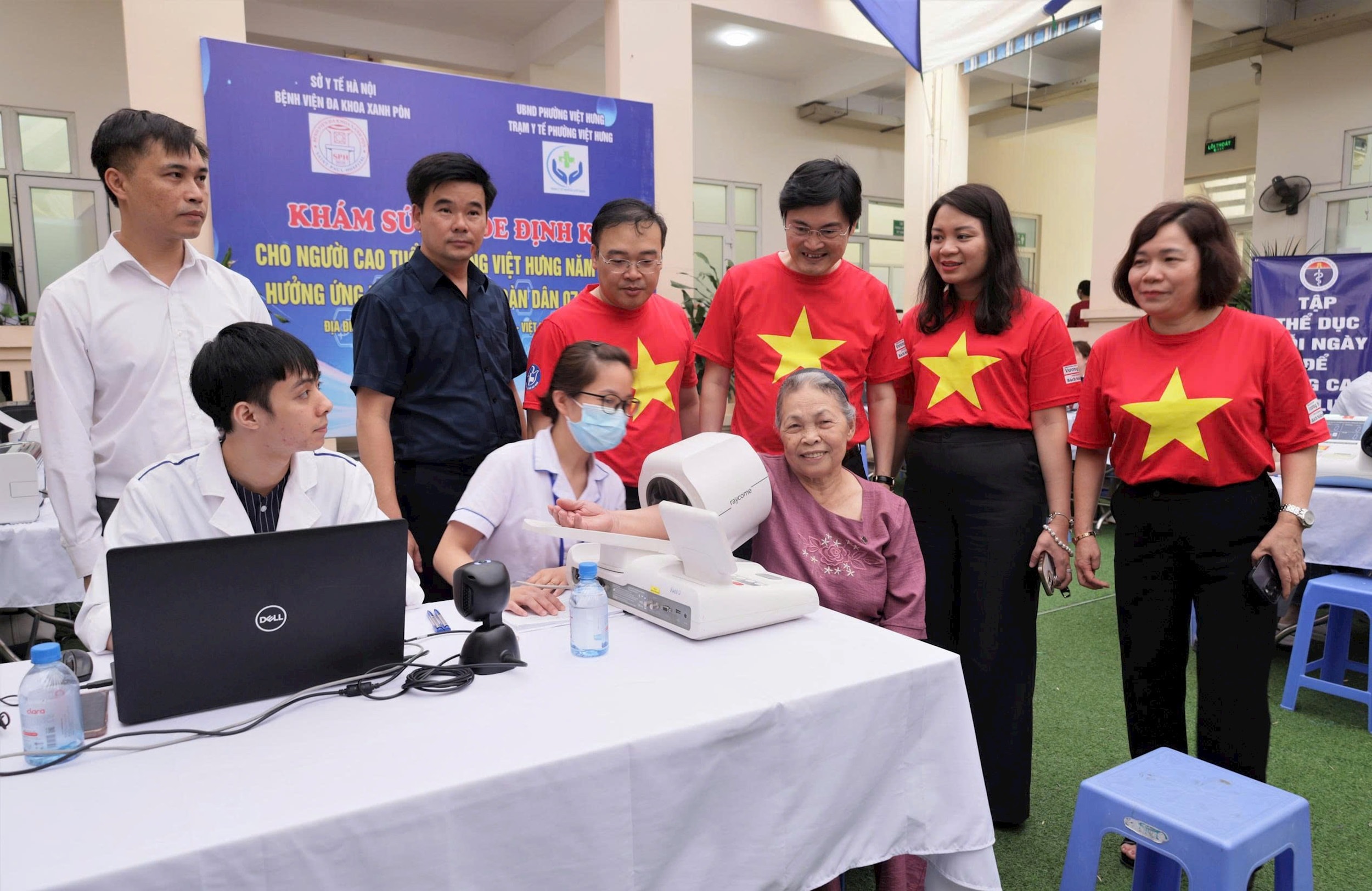 Bác sĩ Bệnh viện Đa khoa Xanh Pôn khám bệnh cho người dân tại Trạm Y tế phường Việt Hưng. Ảnh: Vân Nguyễn