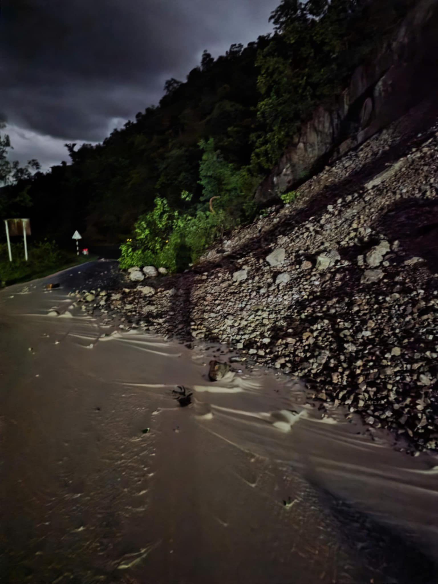 Hiện tượng sạt lở xảy ra trong khoảng từ 20h đến 23h, tại Km110+950 và Km111, khiến hàng trăm mét khối đất đá từ taluy dương đổ tràn xuống mặt đường, tiềm ẩn nguy cơ mất an toàn giao thông.