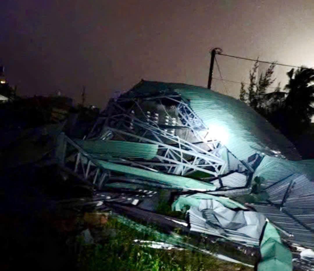 Dưới những đợt gió giật dữ dội, nhiều mái tôn bị cuốn phăng, cây xanh gãy đổ, hàng loạt ngôi nhà tốc mái, sập tường, nhiều gia đình chỉ trong vài phút đã rơi vào cảnh màn trời chiếu đất.