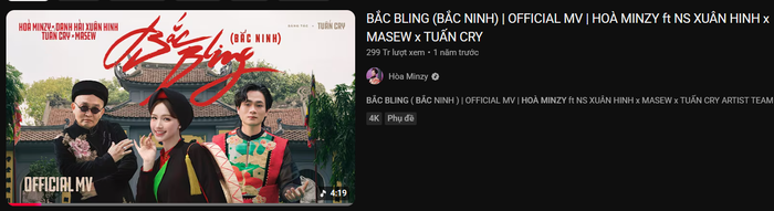 Mới đây, Bắc Bling chính thức đánh dấu cột mốc tròn một năm ra mắt. Trước đó, Hòa Minzy từng bày tỏ mong muốn MV có thể chạm mốc 300 triệu lượt xem như một dấu ấn ý nghĩa cho hành trình của ca khúc. Dù vậy, ở thời điểm kỷ niệm một năm phát hành, MV vẫn chưa kịp đạt con số “tròn trịa” như kỳ vọng của nữ ca sĩ.