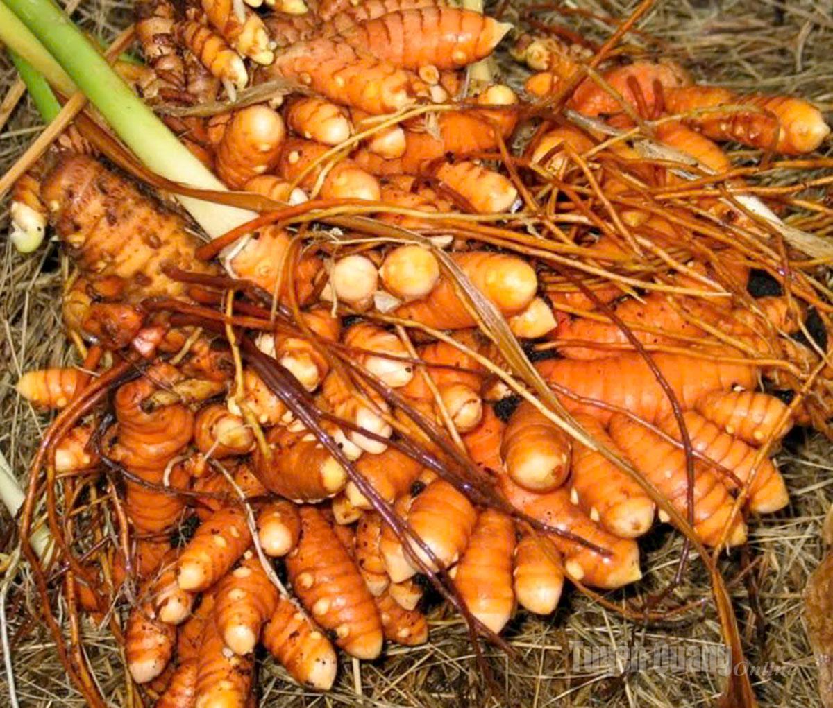 Củ nghệ tươi trước khi đưa vào chế biến thành tinh bột nghệ.