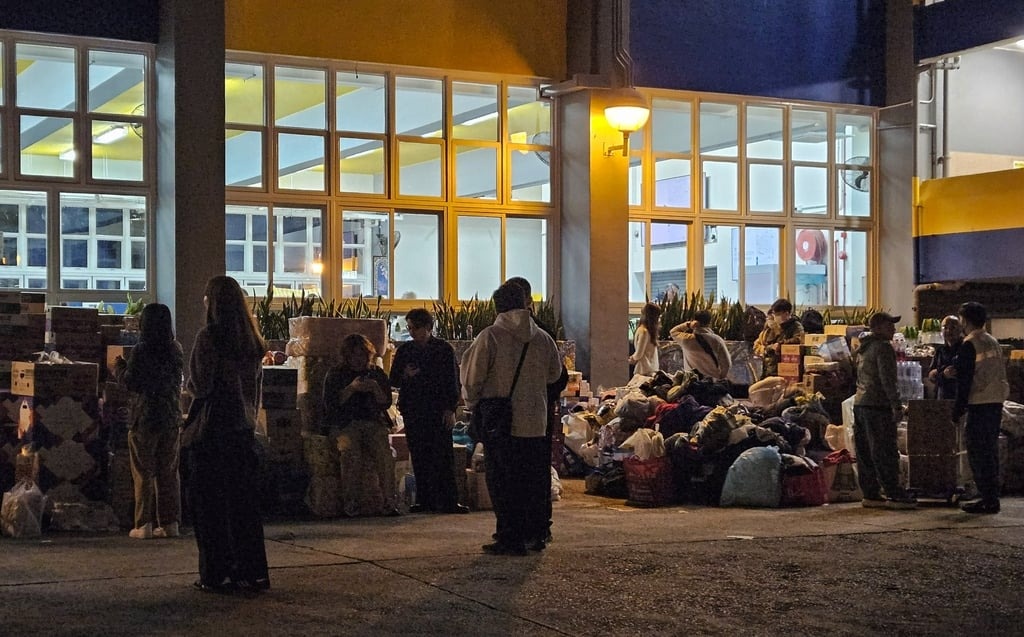 Trường THCS CCC Fung Leung Kit Memorial mở cửa đón người dân tạm trú sau vụ cháy chung cư kinh hoàng. Ảnh: SCMP.