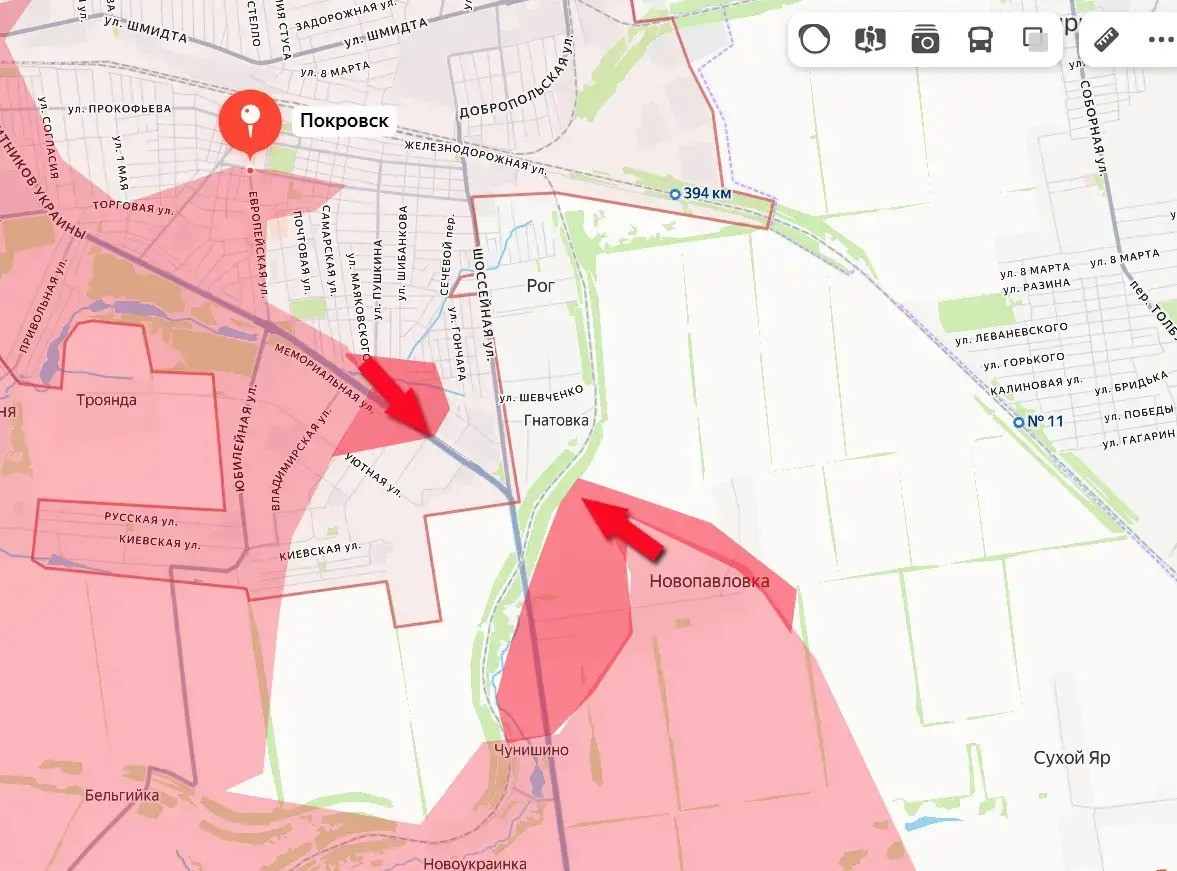 Một quan chức quân sự Nga cho biết, cuộc tiến công từ Novopavlovka sang Gnatovka đang tạo thế gọng kìm nhằm bao vây một cụm quân Ukraine quy mô lớn cố thủ ở khu vực phía đông nam Pokrovsk. “Các đơn vị đối phương trong khu vực này đã gần như bị cắt đứt hoàn toàn nguồn tiếp tế và tuyến rút lui an toàn”, vị này nói.