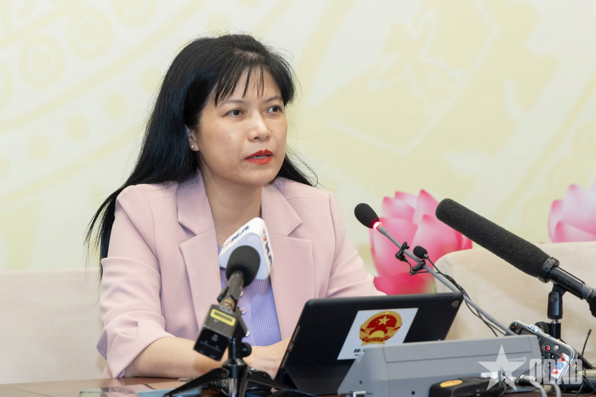 Đồng chí Tạ Thị Yên cung cấp thông tin tại Trung tâm báo chí.