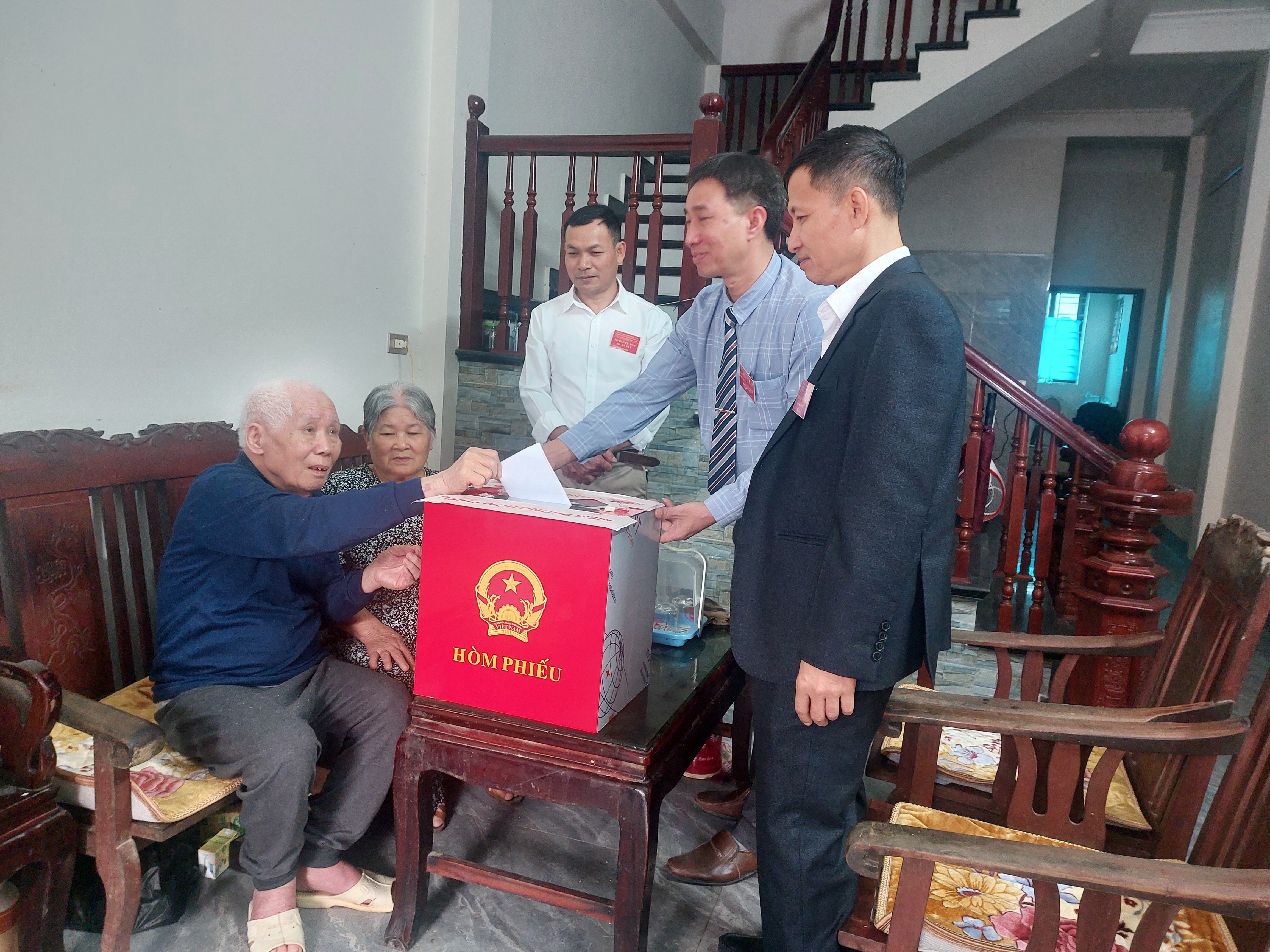 Hòm phiếu di động đến tận nơi cử tri không thể ra nơi bỏ phiếu để bảo đảm quyền công dân. Ảnh: Trần Thu