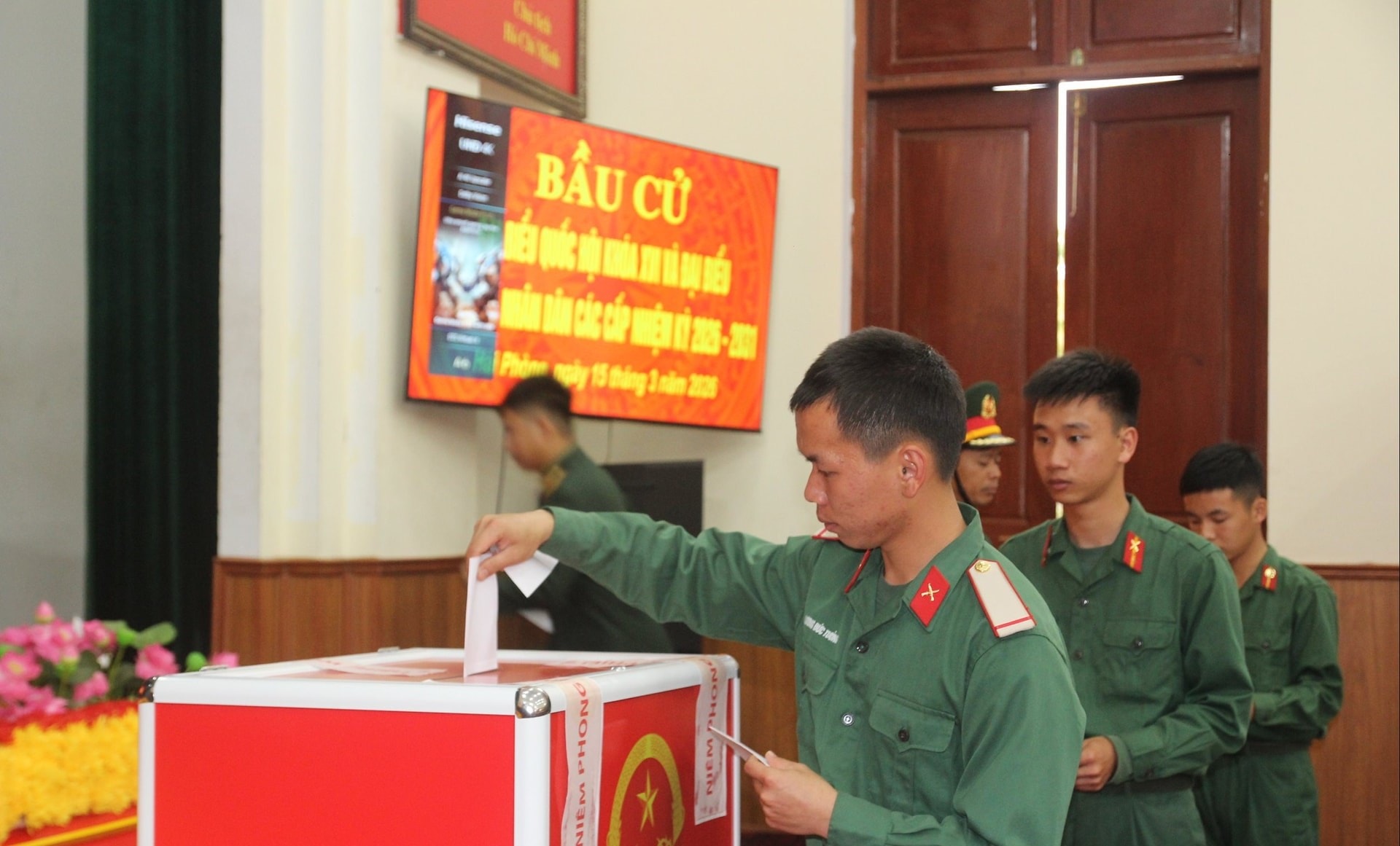 Trong đó, một số khu vực bỏ phiếu của lực lượng vũ trang là khu vực bỏ phiếu riêng tổ chức lễ khai mạc từ 6 giờ (khu vực bỏ phiếu số 28 phường Hồng Bàng, khu vực bỏ phiếu số 47 phường Lê Thanh Nghị…).