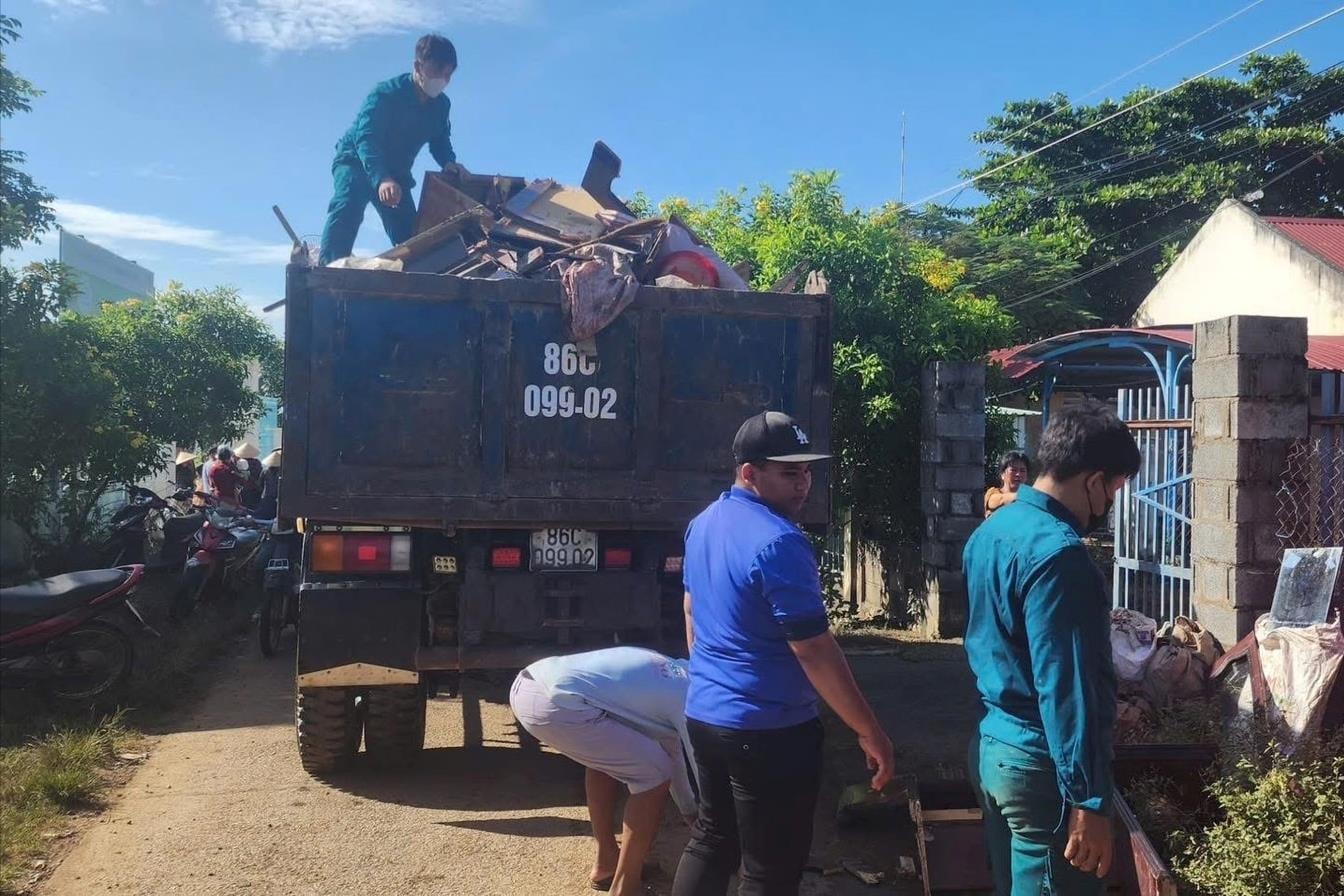 Đoàn viên thanh niên địa phương hỗ trợ người dân dọn dẹp sau mưa lũ