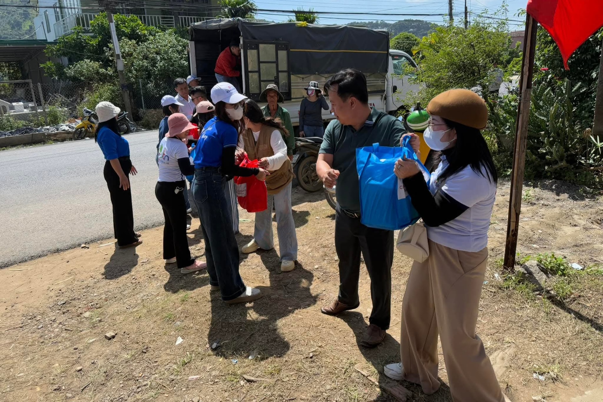 Tại các điểm trao tặng, Phó Bí thư Tỉnh đoàn Lâm Đồng H’Hồng trực tiếp gặp gỡ, chia sẻ và ghi nhận những thiệt hại mà người dân đang phải gánh chịu do ngập úng cục bộ, ảnh hưởng đến sinh kế và tài sản.