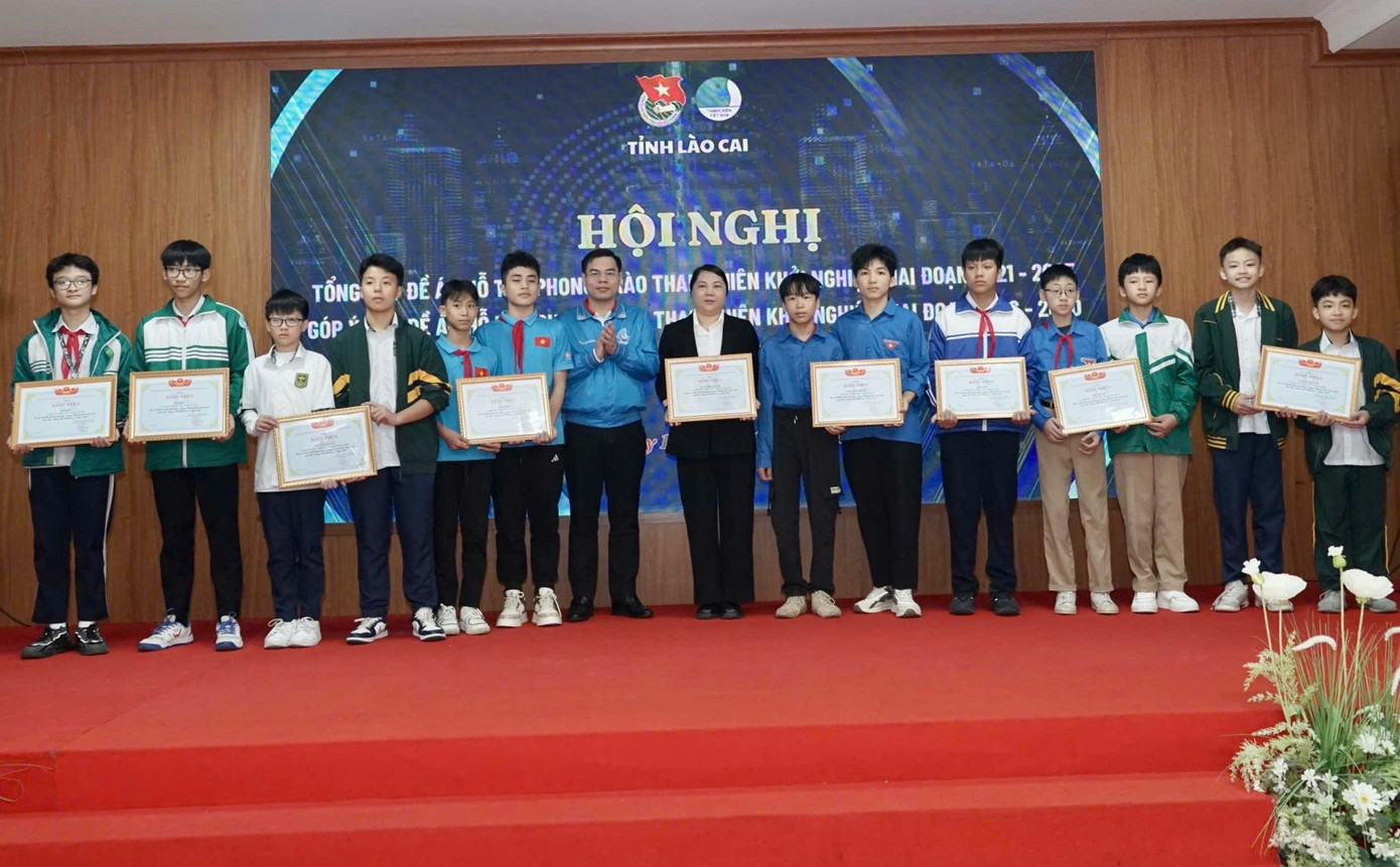 Dịp này, Ban Tổ chức đã tuyên dương 20 đội thi đến từ các trường tiểu học và THCS, cùng các tập thể, cá nhân của tỉnh Lào Cai có thành tích xuất sắc tại Cuộc thi Robotic toàn quốc năm 2025 do Trung ương Đoàn tổ chức.