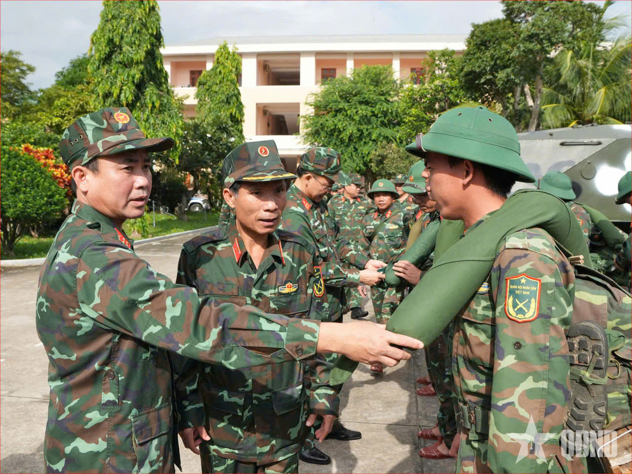 Thiếu tướng Đoàn Văn Nhất, Phó chủ nhiệm Chính trị Quân khu 5 và Đại tá Nguyễn Thế Vinh, Chỉ huy trưởng Bộ CHQS tỉnh Gia Lai kiểm tra công tác chuẩn bị cơ động làm nhiệm vụ phòng, chống bão số 13.