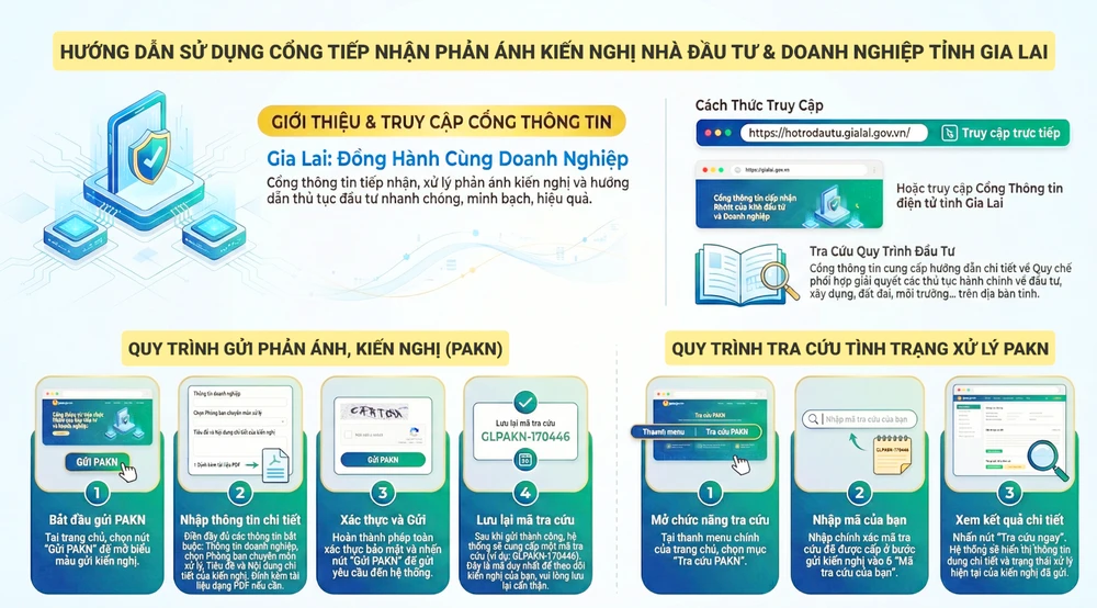 Ngày 7-2, Chủ tịch UBND tỉnh Gia Lai đã có văn bản chỉ đạo các sở, ngành và địa phương trên địa bàn tỉnh triển khai vận hành sử dụng Cổng tiếp nhận phản ánh, kiến nghị của nhà đầu tư và doanh nghiệp (Cổng giao tiếp đầu tư tỉnh Gia Lai), yêu cầu đảm bảo vận hành kể từ ngày 10-2.