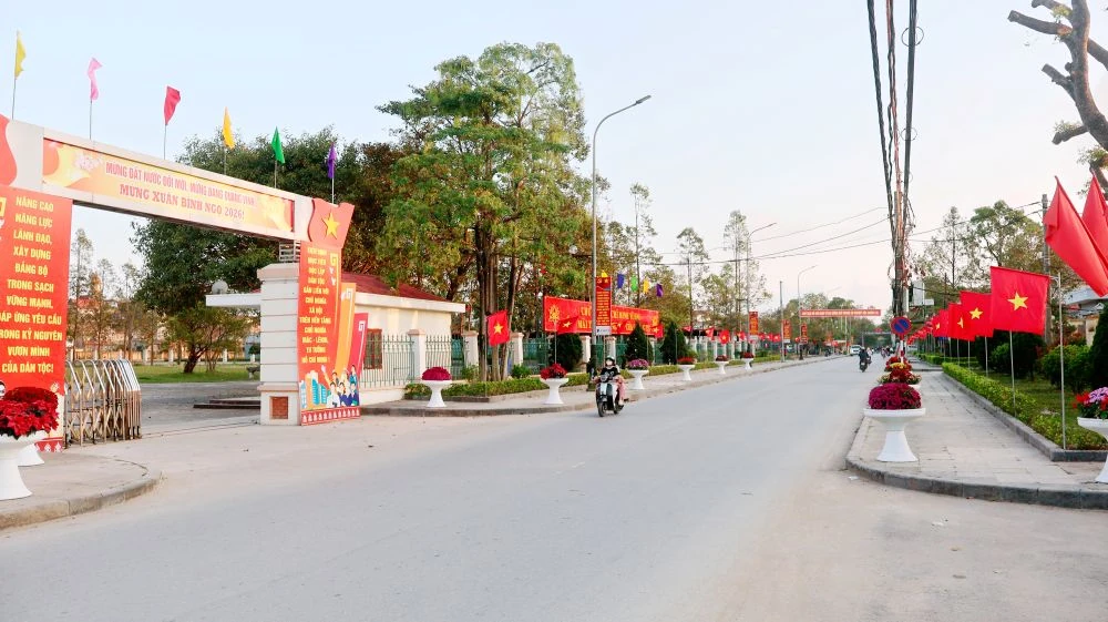 Các cụm pano lớn, băng rôn, khẩu hiệu mừng đất nước đổi mới, mừng Đảng quang vinh, mừng Xuân Bính Ngọ 2026 được bố trí đồng bộ, kết hợp hệ thống đèn chiếu sáng tạo nên diện mạo khang trang, tươi mới, góp phần tạo ấn tượng đẹp cho người dân và du khách khi về với Tĩnh Gia dịp lễ hội.