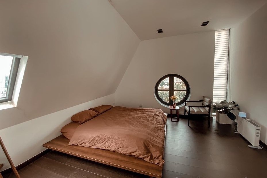 Vì vận hành như một nơi lưu trú, villa bố trí nhiều loại phòng với giường đôi lớn, giường sofa. Nội thất của EKEhaus 90% bằng gỗ, tuân thủ tone màu nâu ấm từ giường đến ga giường. Mỗi phòng đều có cửa sổ lớn đón ánh sáng, bố trí những tấm gương lớn và kính trong suốt, tạo cảm giác rộng rãi. Phòng tắm thông với phòng ngủ. Mức giá thuê hiện tại của villa dao động 4,5-10 triệu đồng, tùy theo số lượng người và thời điểm.