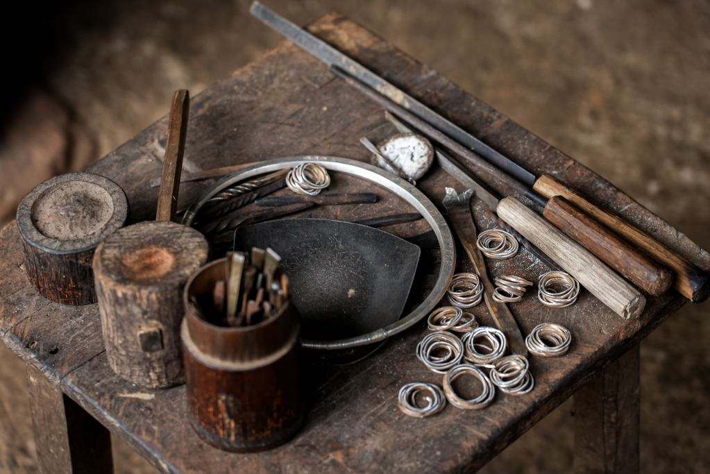 Những công cụ thô sơ nhưng là “bảo bối” tạo nên các hoa văn tinh xảo của nghề chạm bạc