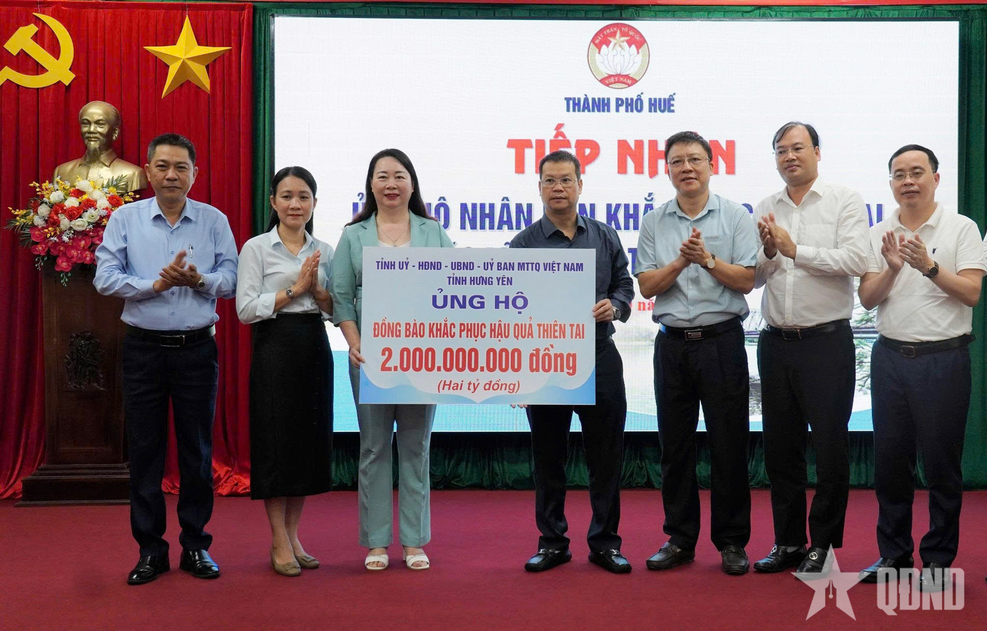 Đoàn công tác tỉnh Hưng Yên trao kinh phí hỗ trợ đồng bào TP Huế khắc phục hậu quả thiên tai.