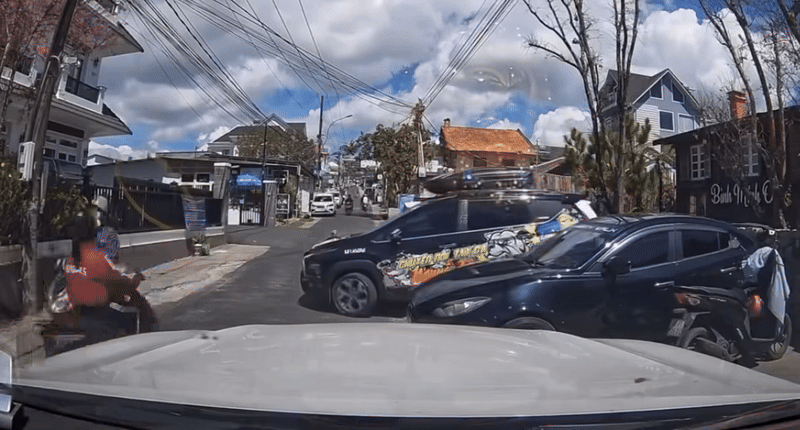 (Video ghi lại tình huống giao thông giữa xe máy và ô tô. Nguồn: Ho Thieu Mai/Group Hóng Đường Phố)