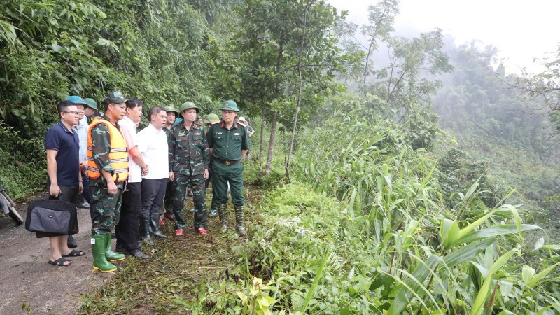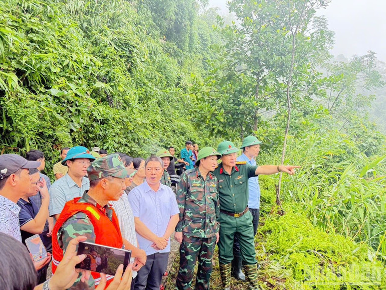 Thiếu tướng Phạm Hải Châu cùng lãnh đạo Ủy ban nhân dân tỉnh, Bộ Chỉ huy quân sự tỉnh Lạng Sơn kiểm tra tại hiện trường.
