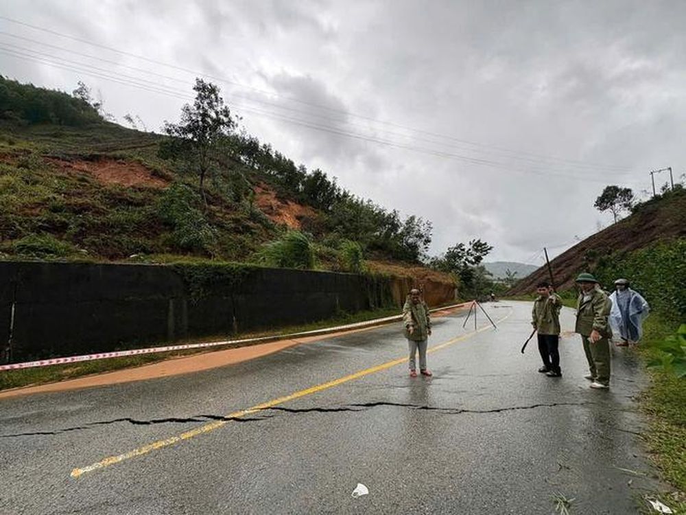 Tỉnh lộ 14B đoạn qua xã Long Quảng (TP Huế) xuất hiện vết nứt sâu kéo dài 20 mét.