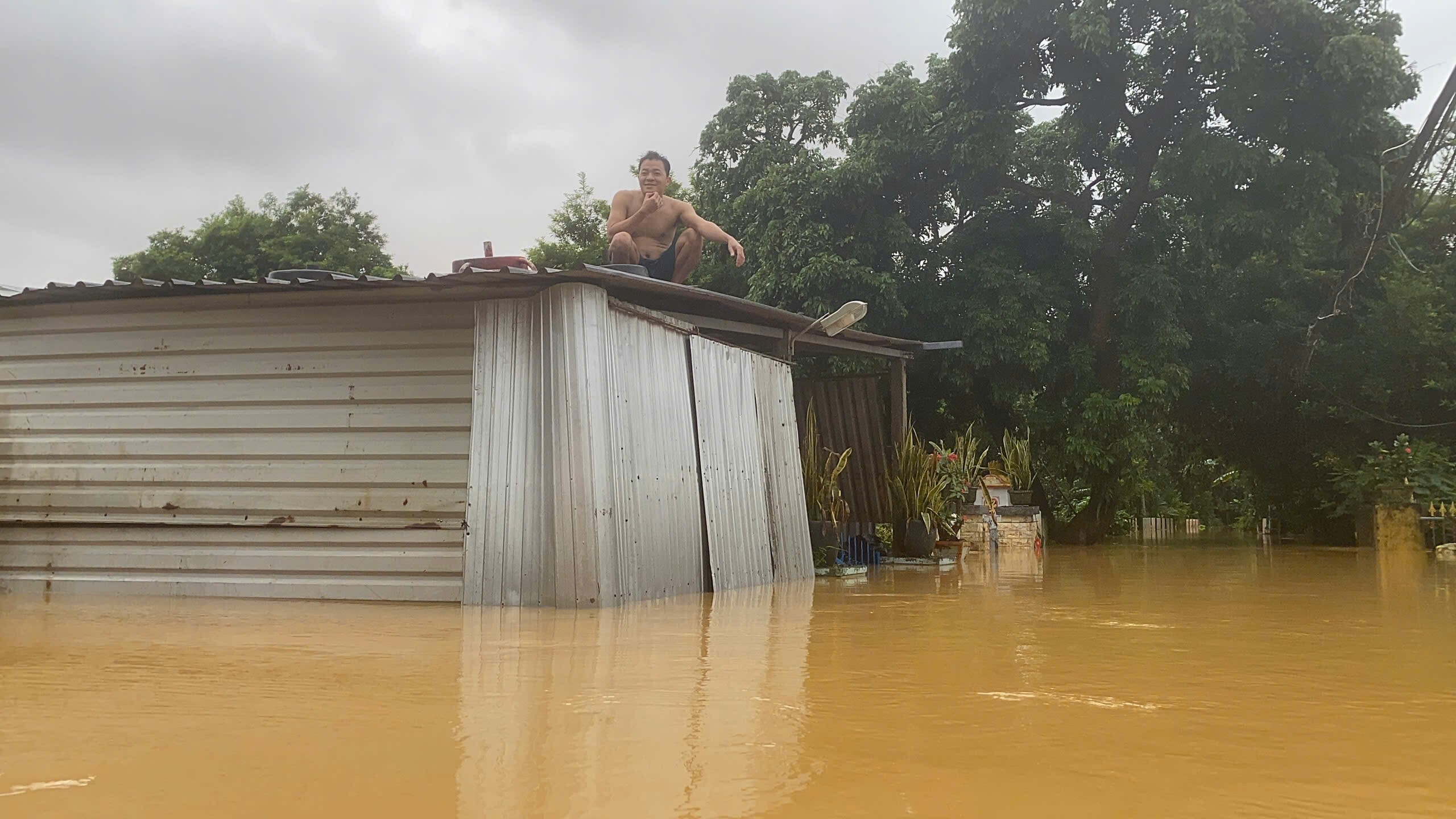 Hiện nhiều nơi tại TP Huế còn ngập rất sâu, người dân ngồi trên mái nhà chờ cứu hộ