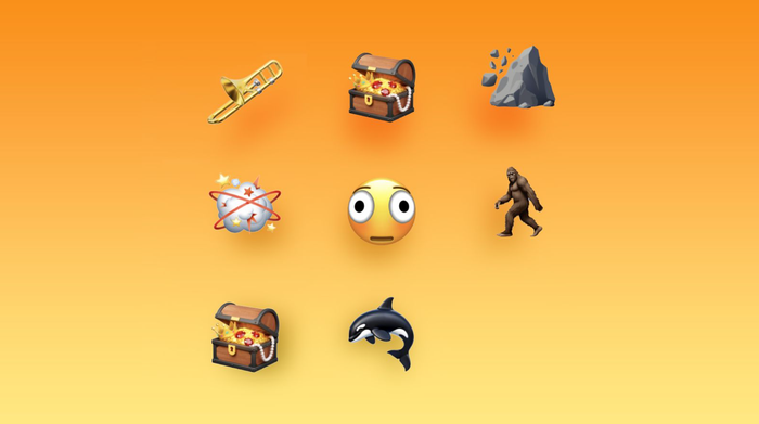 Apple đã thêm một số emoji mới như kèn trombone, rương kho báu, khuôn mặt méo mó, sinh vật lông xù, đám mây đánh nhau, cá voi sát thủ và sạt lở đất. Ngoài ra, hãng cũng bổ sung tùy chọn màu da cho emoji người vật lộn và vũ công tai thỏ, cùng phiên bản trung tính giới tính cho emoji vũ công ballet.