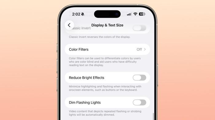 Apple đã đổi tên thiết lập trợ năng Reduce Highlighting Effects thành Reduce Bright Effects. Tính năng này giúp giảm các hiệu ứng phát sáng và nhấp nháy khi tương tác với các thành phần trên màn hình, như nút bấm hoặc bàn phím.