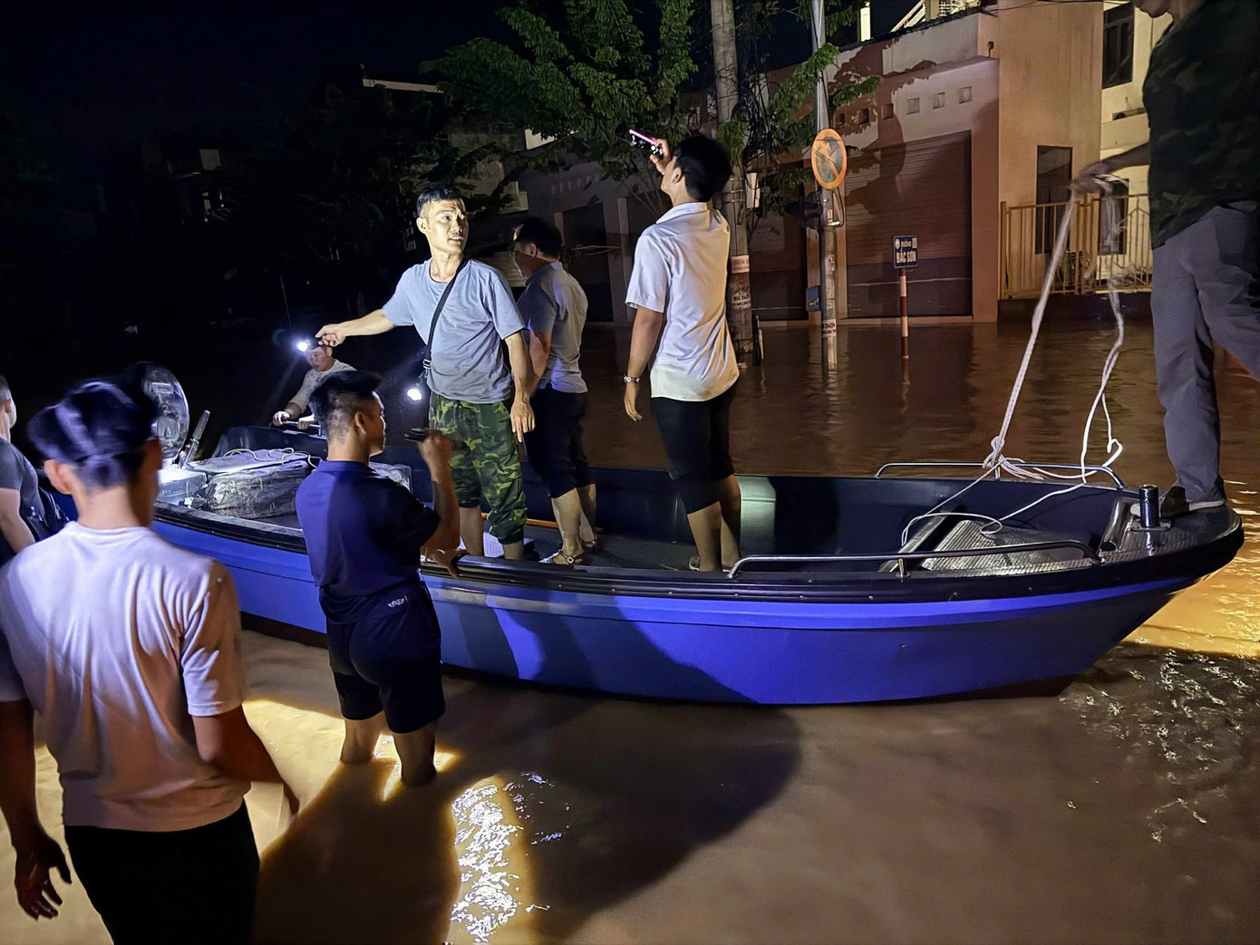 Nhiều xuồng, ca nô kịp thời được đưa đến để hỗ trợ sơ tán người dân ra khỏi vùng ngập sâu.