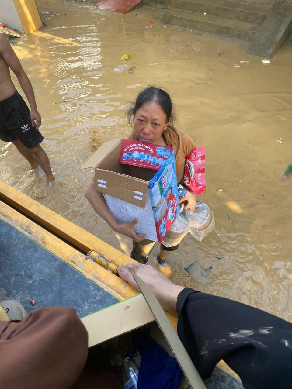 Những nhu yếu phẩm được trao đến tay người dân trong vùng ngập sâu.