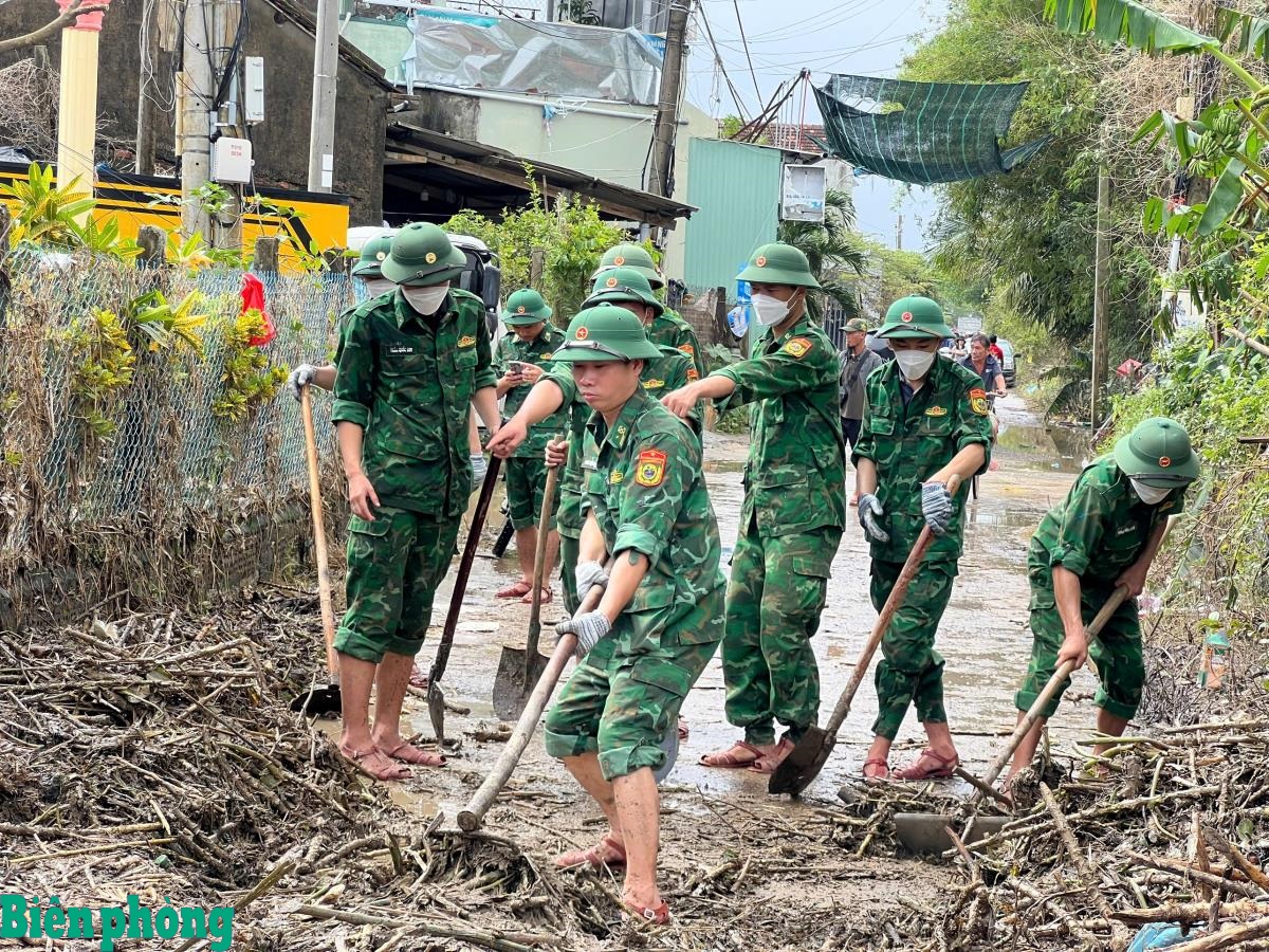 BĐBP Đắk Lắk giúp người dân dọn dẹp vệ sinh môi trường sống. Ảnh: Ngọc Lân