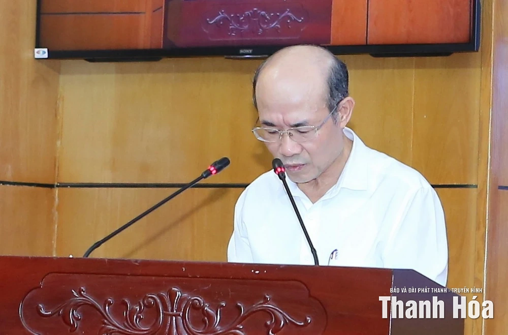 Các đồng chí lãnh đạo tỉnh dự tại điểm cầu Tỉnh ủy Thanh Hóa.
