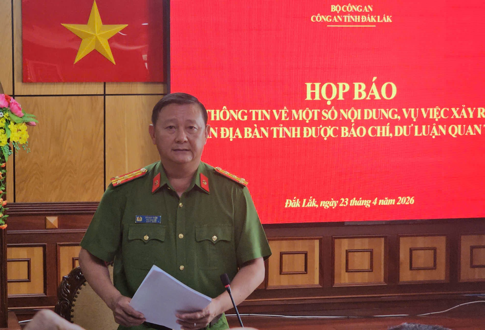 Theo Đại tá Võ Duy Tuấn, Cơ quan CSĐT đã khởi tố vụ án, khởi tố bị can đối với cựu Thiếu tá Nguyễn Quang Hoàng, cán bộ thuộc Trạm CSGT Krông Búk.