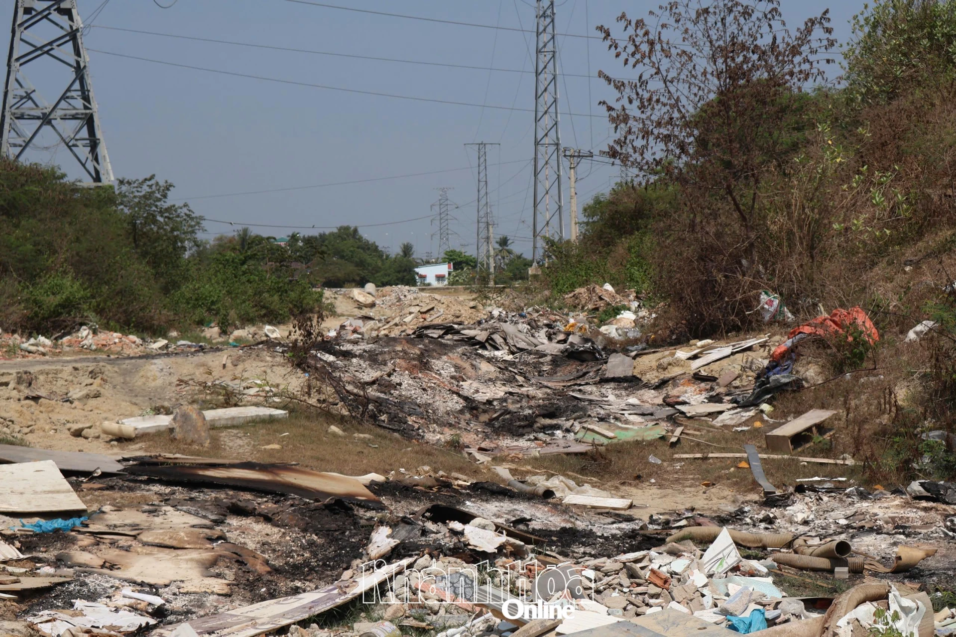 Rác thải tập kết và đốt không đúng nơi quy định ở khu đất trống ven đường Võ Nguyên Giáp (phường Tây Nha Trang).
