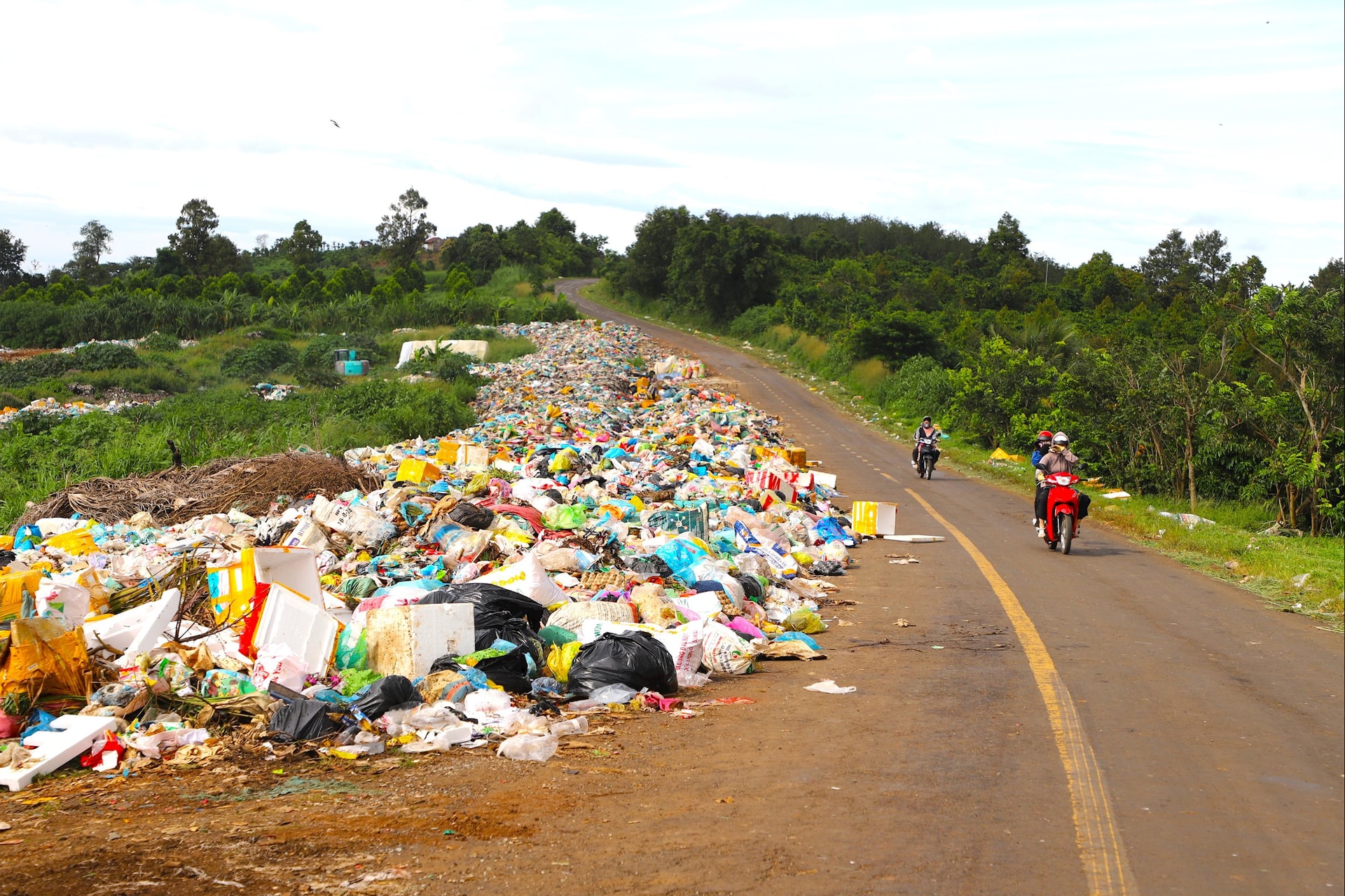 Bãi rác quá tải kéo dài, đổ tràn ra Quốc lộ 14C