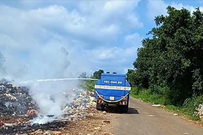 Sau khi hoàn tất công tác dọn dẹp tại bãi rác, lực lượng chức năng đã tiến hành phun khử khuẩn nhằm bảo đảm vệ sinh môi trường và hạn chế nguy cơ phát tán mầm bệnh