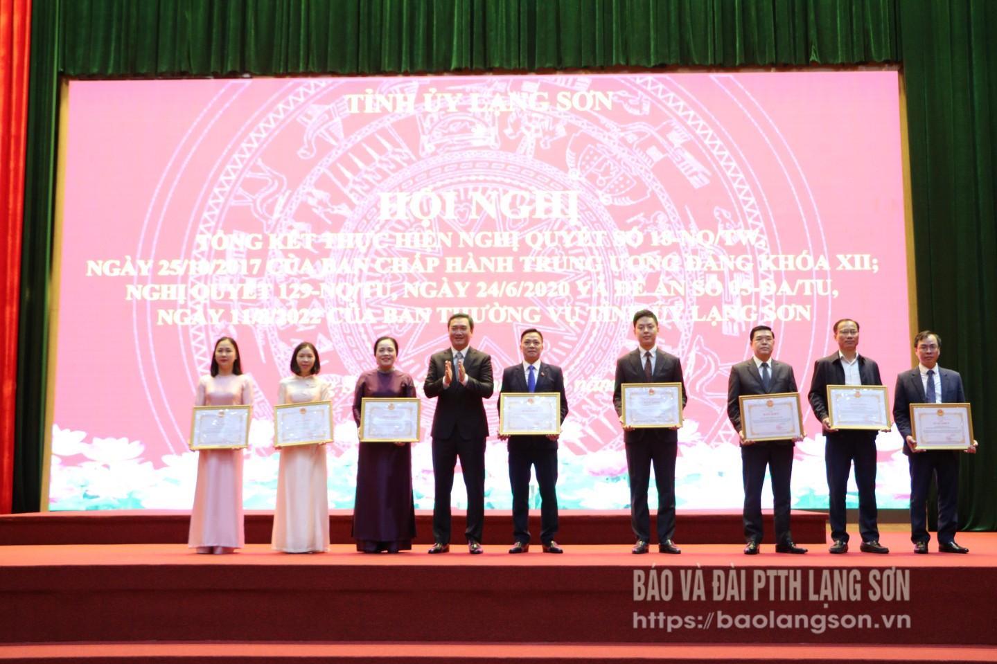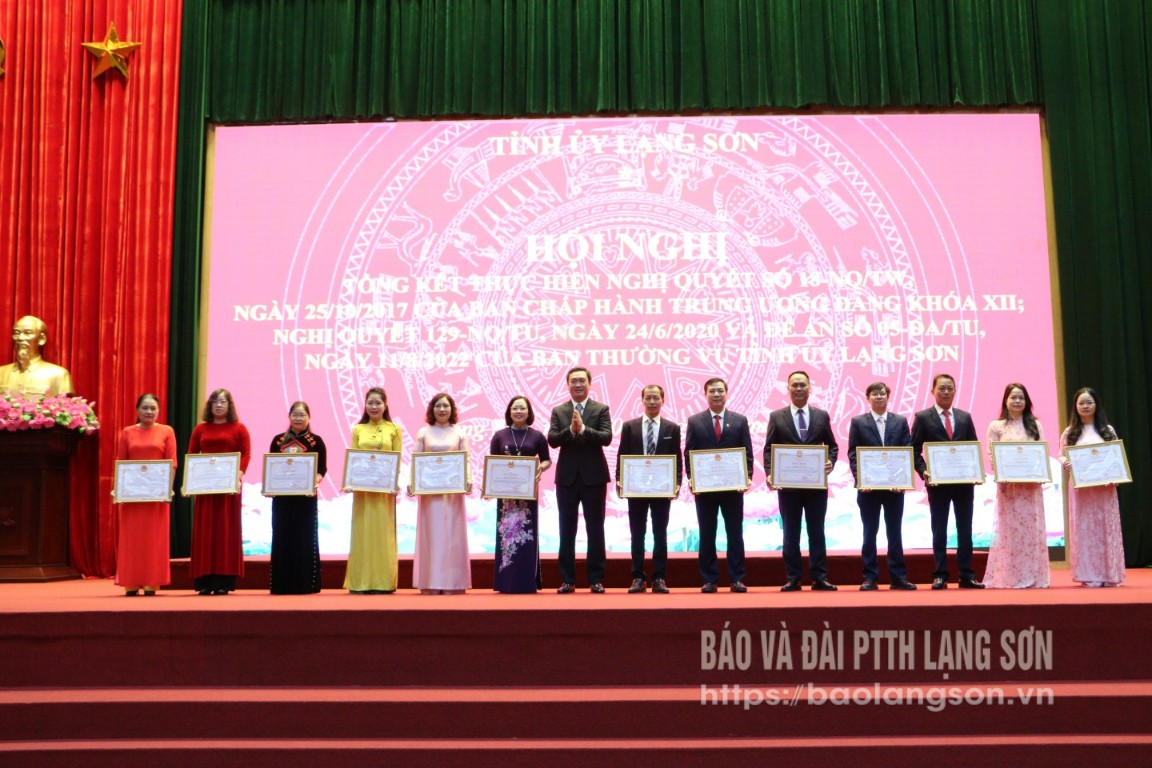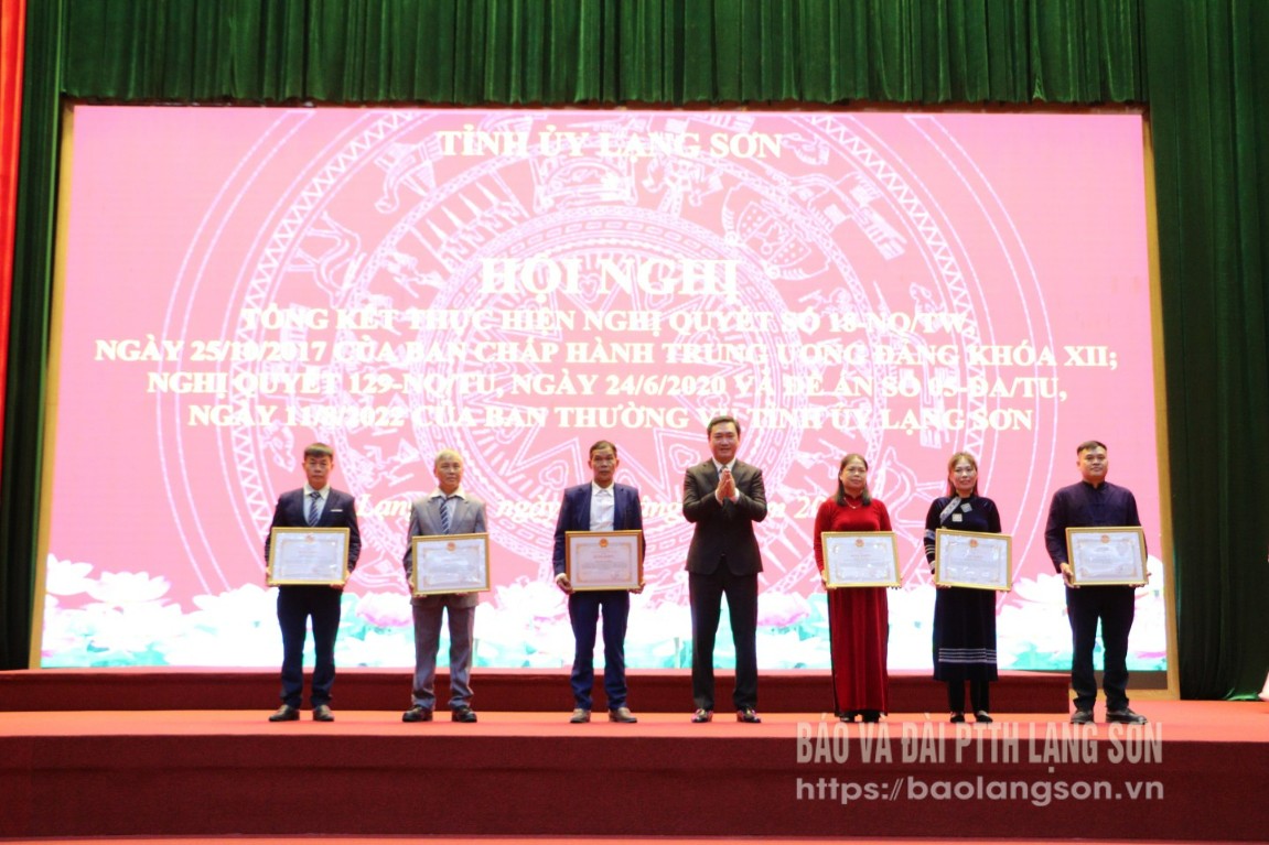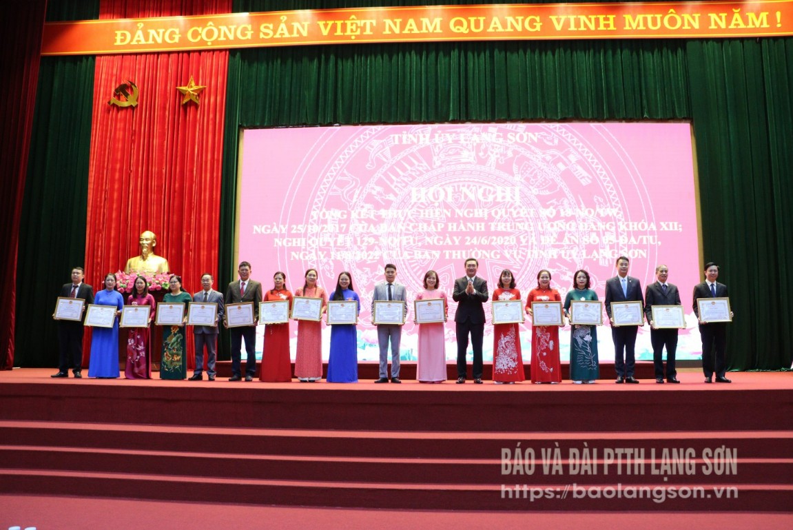 Nhân dịp này, 3 tập thể, 22 cá nhân được tặng Bằng khen của Chủ tịch UBND tỉnh vì đã có thành tích xuất sắc trong thực hiện Nghị quyết 18 của Ban Chấp hành Trung ương Đảng khóa XII; 2 tập thể, 4 cá nhân được được tặng Bằng khen của Chủ tịch UBND tỉnh vì đã có thành tích xuất sắc trong thực hiện Nghị quyết 129 của Ban Thường vụ Tỉnh ủy; 14 tập thể, 4 cá nhân được tặng Bằng khen của Chủ tịch UBND tỉnh vì đã có thành tích xuất sắc trong thực hiện Đề án 05 của Ban Thường vụ Tỉnh ủy.