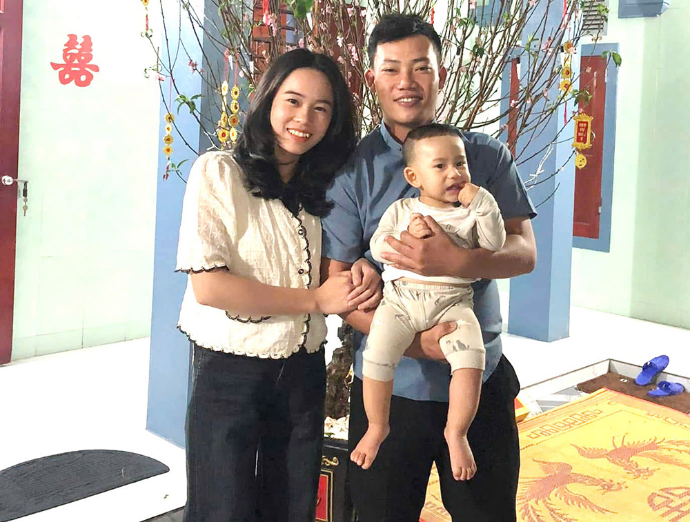 Đại úy Bùi Văn Tú bên gia đình nhỏ. Ảnh do nhân vật cung cấp