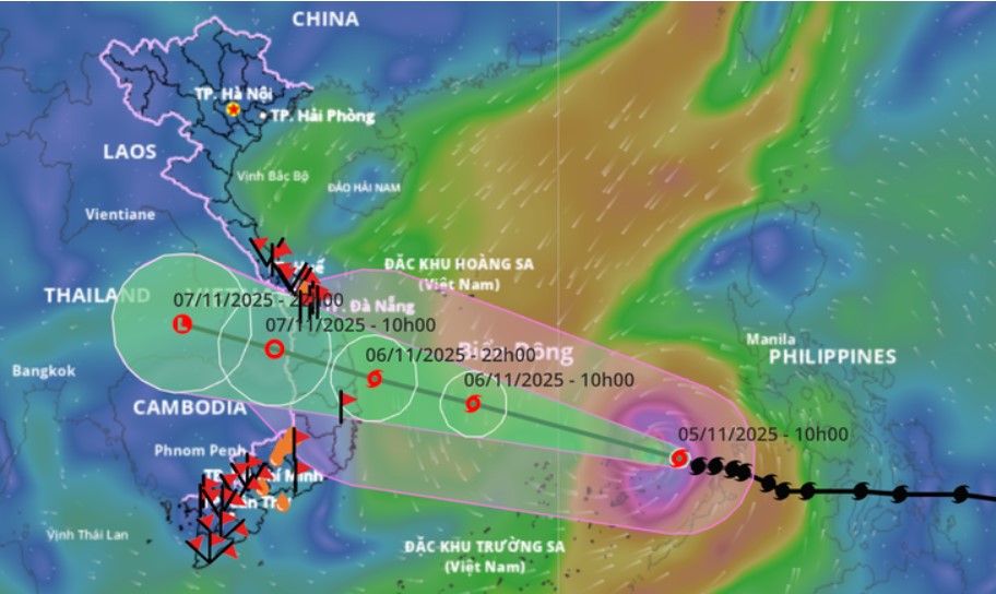 Theo Trung tâm Dự báo Khí tượng Thủy văn Quốc gia, Bão Kalmaegi là một cơn bão rất mạnh, di chuyển nhanh, với những dự báo đáng chú ý: Dự báo đến 13h00 ngày 06/11: Bão trên khu vực giữa Biển Đông, mạnh cấp 14, giật cấp 17, cách bờ biển tỉnh Gia Lai khoảng 320 km về phía Đông Đông Nam. Ảnh hưởng biển: Từ chiều ngày 05 đến 06/11, khu vực giữa Biển Đông (bao gồm vùng biển phía Bắc Đặc khu Trường Sa) và ngoài khơi Đà Nẵng - Khánh Hòa có khả năng chịu tác động của gió mạnh cấp 12-14, giật trên cấp 17, sóng biển cao 8,0-10,0m; Biển động dữ dội. Mưa lớn và Lũ lụt: Mưa lớn diện rộng từ đêm 06/11 đến ngày 09/11 tại khu vực từ Quảng Trị đến Đắk Lắk, nguy cơ xuất hiện đợt lũ mới trên các sông.