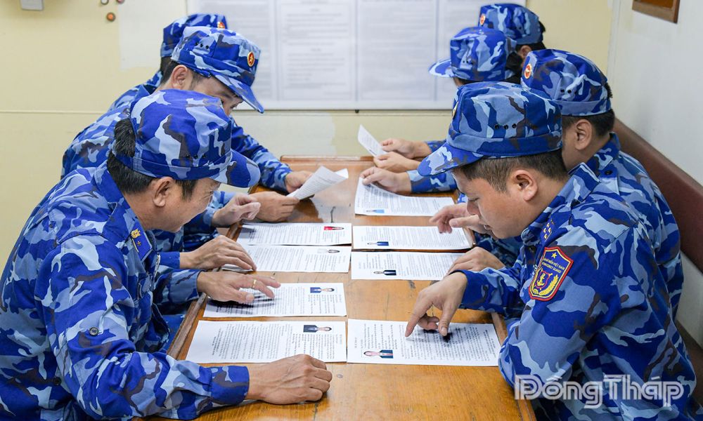 Tại Tàu CSB 6008, Tổ phó Tổ bầu cử số 10, đã triển khai để cử tri nghiên cứu tiểu sử, chương trình hành động của người ứng cử đại biểu Quốc hội khóa XVI và đại biểu HĐND các cấp nhiệm kỳ 2026 - 2031.
