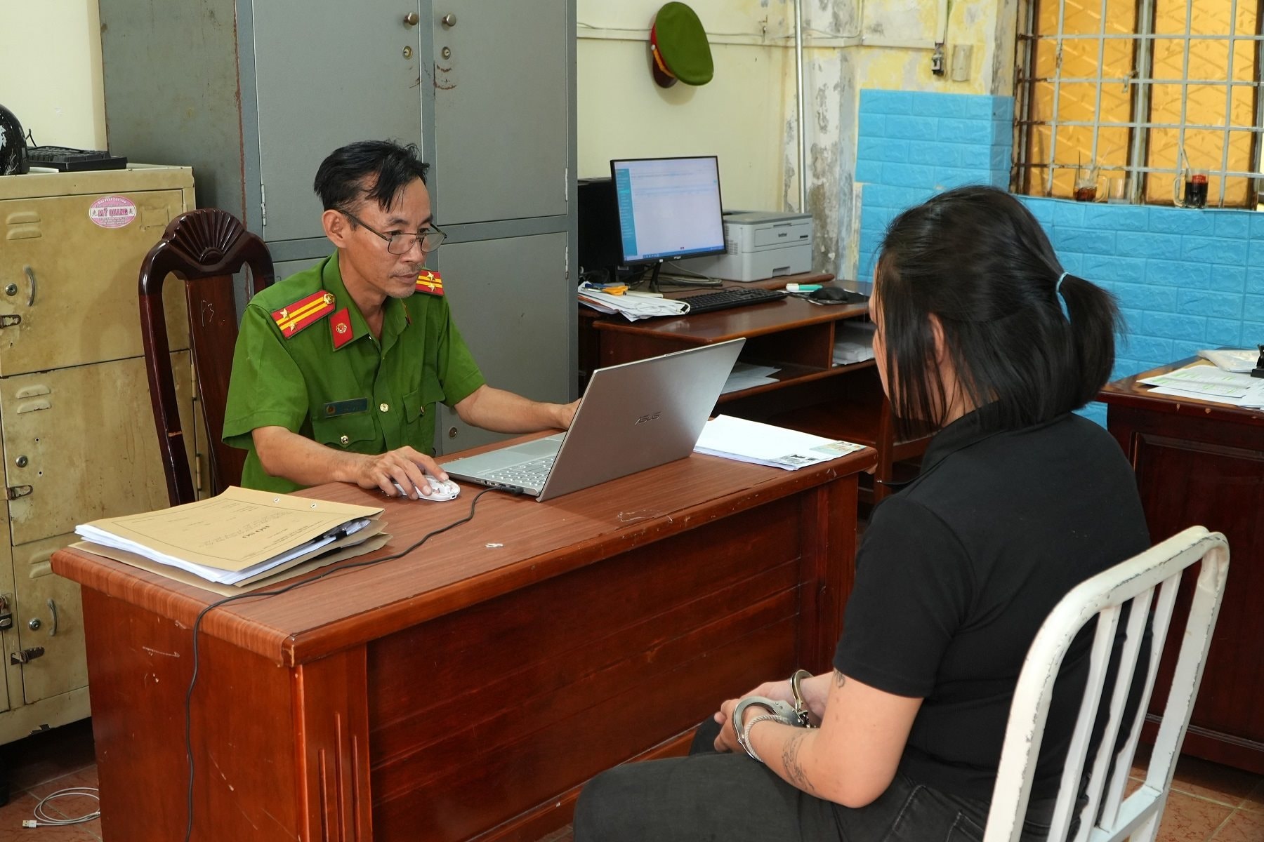 Công an phường Phú Lợi làm việc với đối tượng Dư Thị Hồng Nhung.