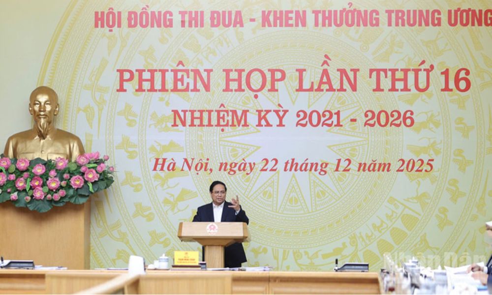 Thủ tướng Chính phủ Phạm Minh Chính chủ trì Phiên họp lần thứ 16 Hội đồng Thi đua-Khen thưởng Trung ương. Ảnh: Trần Hải