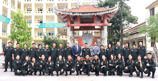 Các giảng viên của Trung tâm Đào tạo và Phát triển năng lực gìn giữ hòa bình, Bộ Công an cùng hai giảng viên nước ngoài đến từ Viện Đào tạo và Nghiên cứu LHQ (UNITAR).
