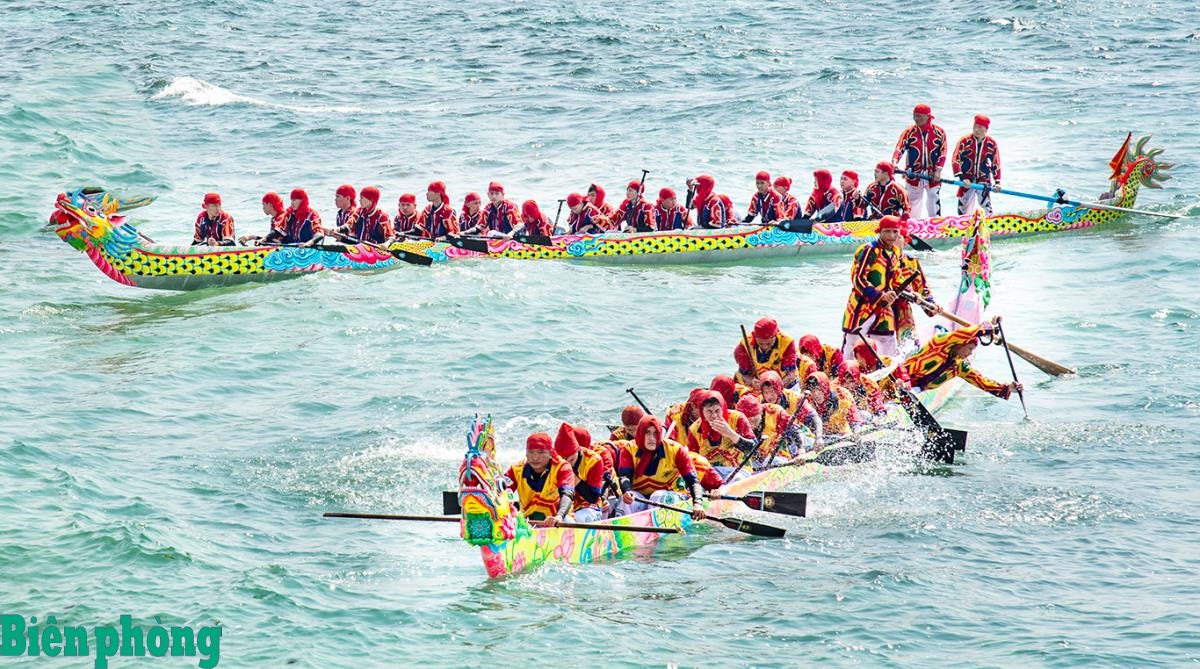 Lễ hội đua thuyền Tứ linh được tổ chức sau buổi lễ. Ảnh: Lê Văn Chương