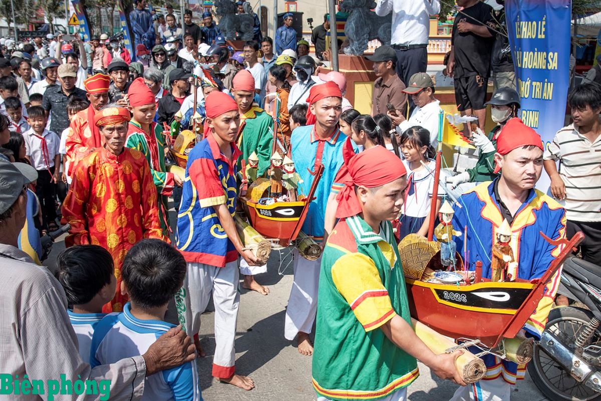 Người chủ lễ đọc chúc văn đã nhắc đến công lao của những Hùng binh Hoàng Sa năm xưa đã không quản hy sinh, khó nhọc, năm nào cũng nhận lệnh của triều đình, lên chiếc thuyền thô sơ đi 3 ngày 3 đêm để ra Hoàng Sa, 5 tháng sau trở về kinh thành Huế để nộp hải vật, báo cáo kết quả, bổ sung bản đồ đã vẽ mới, nhận ban thưởng, sau đó trở về quê hương.