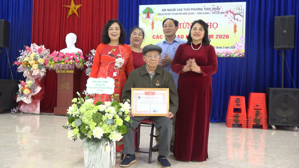 Buổi lễ mừng thọ 30 cụ cao niên, gồm: 9 cụ 70 tuổi, 5 cụ 75 tuổi, 8 cụ 80 tuổi, 1 cụ 85 tuổi, 6 cụ 90 tuổi và 1 cụ 95 tuổi. Đây là hoạt động thường niên có ý nghĩa thiết thực, thể hiện sự quan tâm của cấp ủy, chính quyền, tổ chức hội và cộng đồng đối với người cao tuổi, đồng thời, góp phần phát huy truyền thống “kính lão, trọng thọ” tốt đẹp của dân tộc.