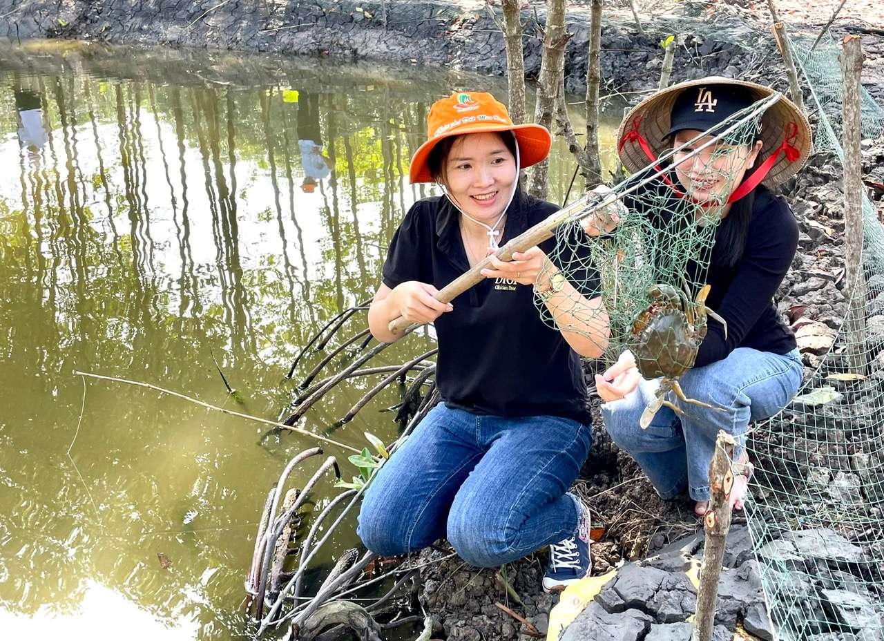 Du khách trải nghiệm bắt cua ở Cà Mau. Ảnh: Huỳnh Biển