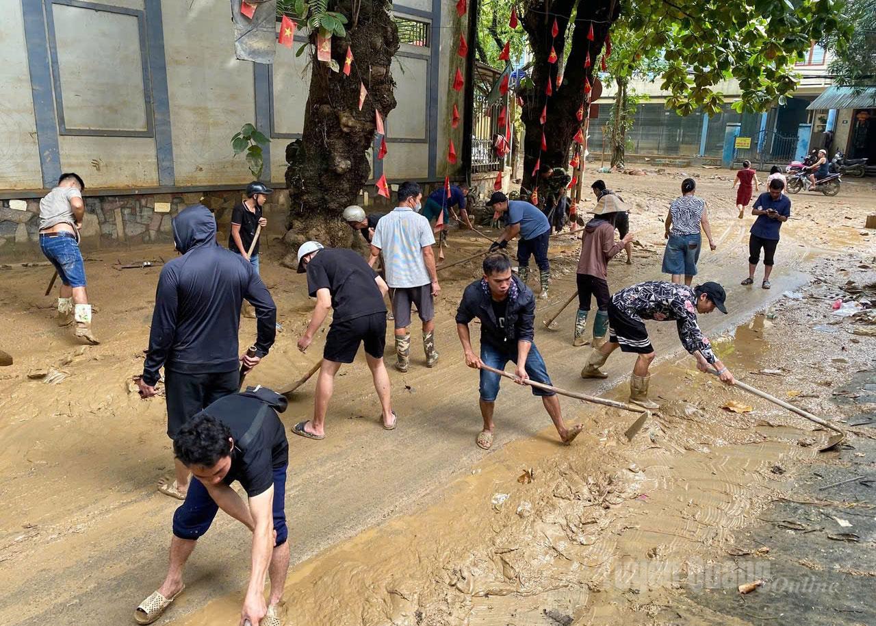 Người dân phường Hà Giang 1 vất vả dọn dẹp bùn đất sau bão số 10.