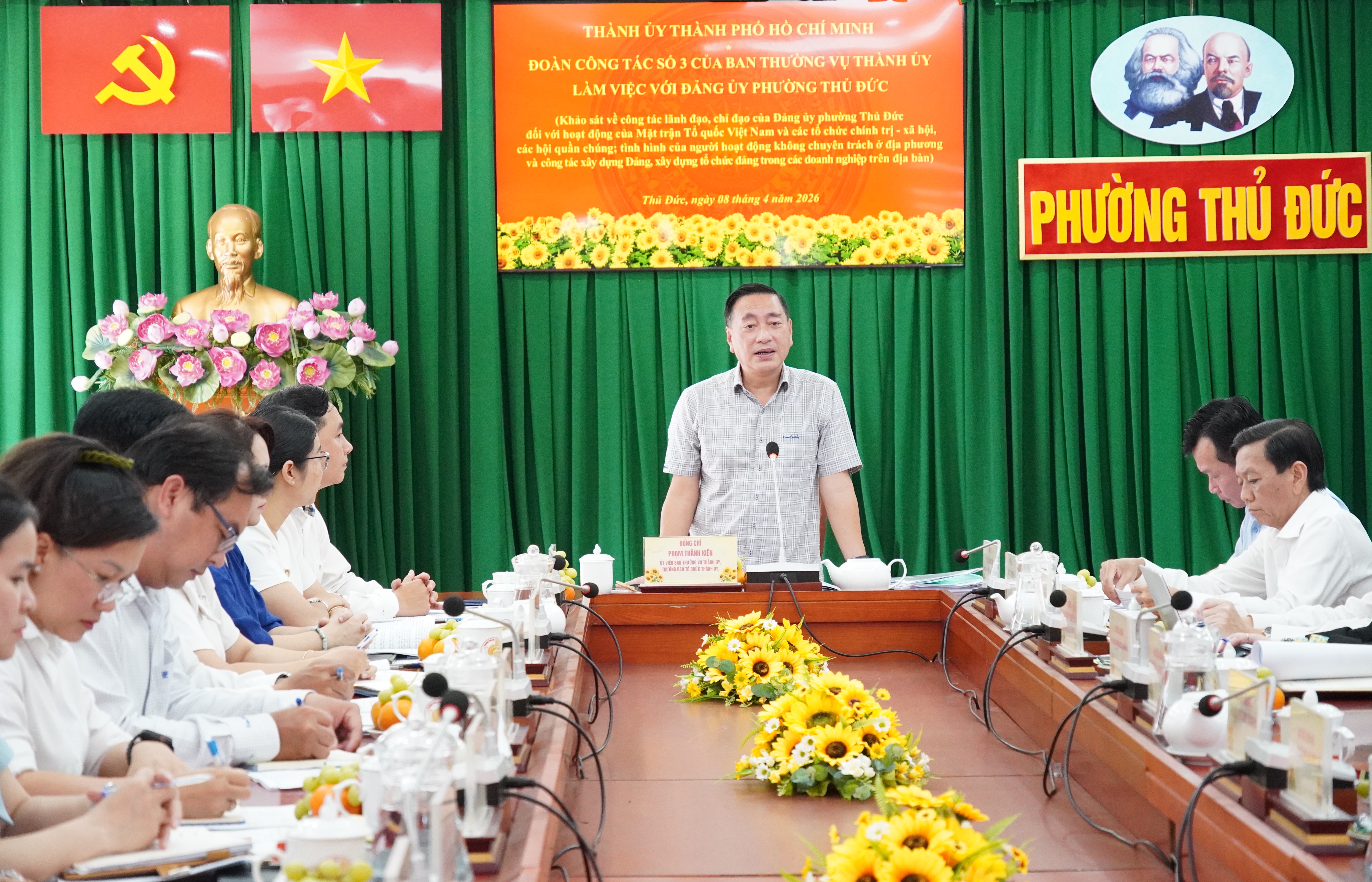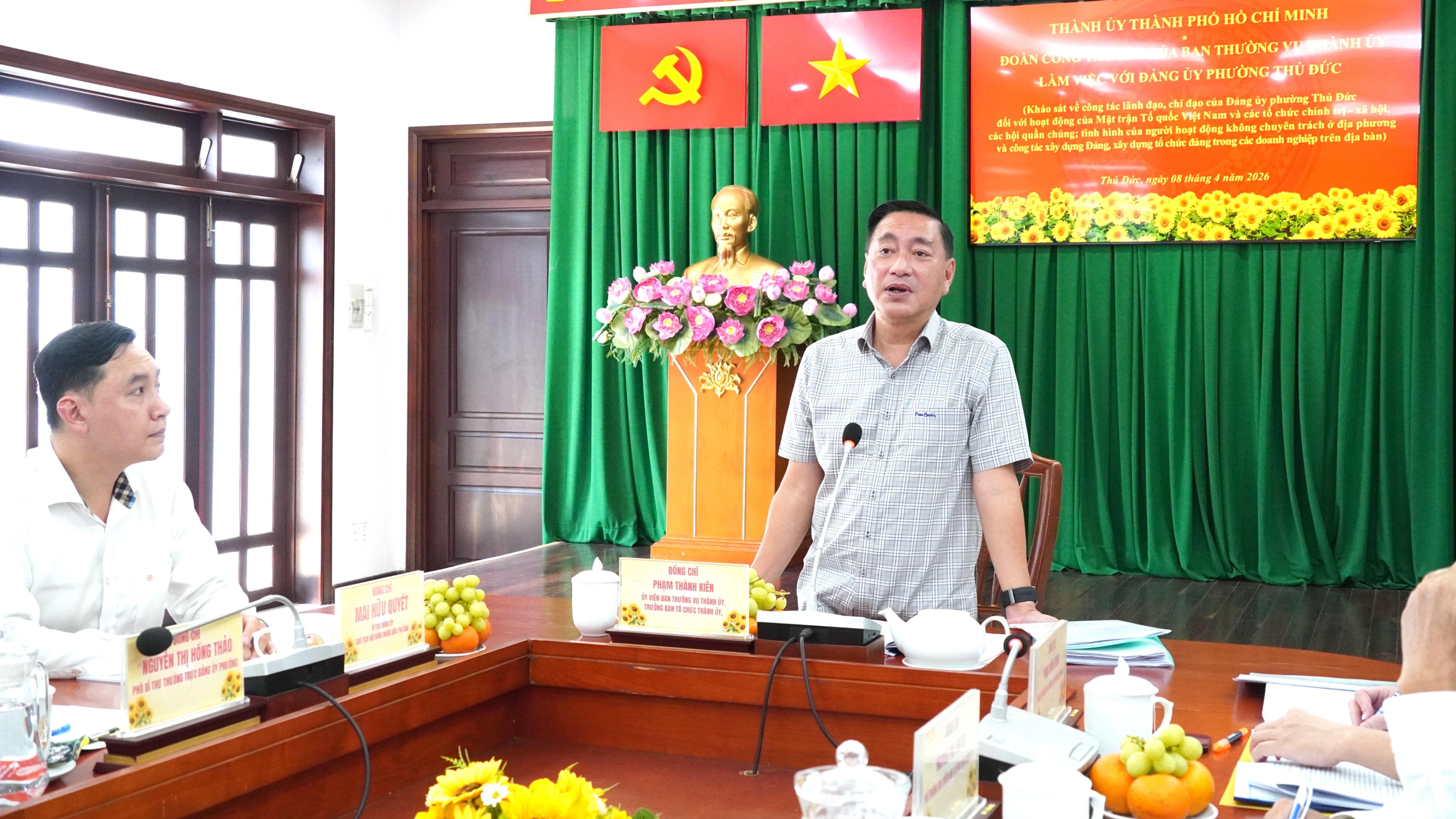 Đoàn công tác do đồng chí Phạm Thành Kiên làm trưởng đoàn, làm việc với Đảng ủy phường Thủ Đức
