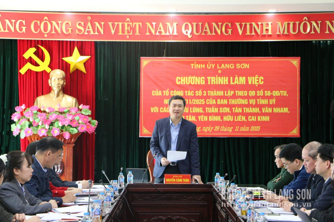 Lãnh đạo Đảng ủy xã Cai Kinh báo cáo kết quả thực hiện nhiệm vụ và nêu một số đề xuất với tổ công tác