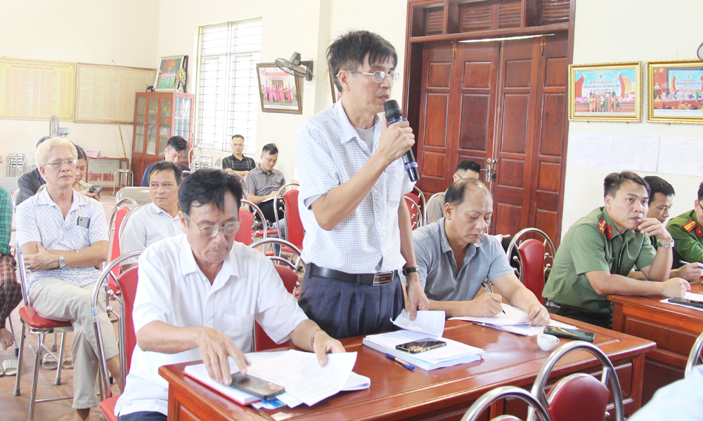 Các đại biểu tỉnh, xã và thôn thảo luận làm rõ một số kiến nghị của người dân về: Phần diện tích đất nông nghiệp chưa chi trả; phần kinh phí chênh lệch đất nông nghiệp đã chi trả tạm ứng; hạn mức đất ở; cách thức kiểm kê, định giá tài sản gắn liền với đất; đất tái định cư…