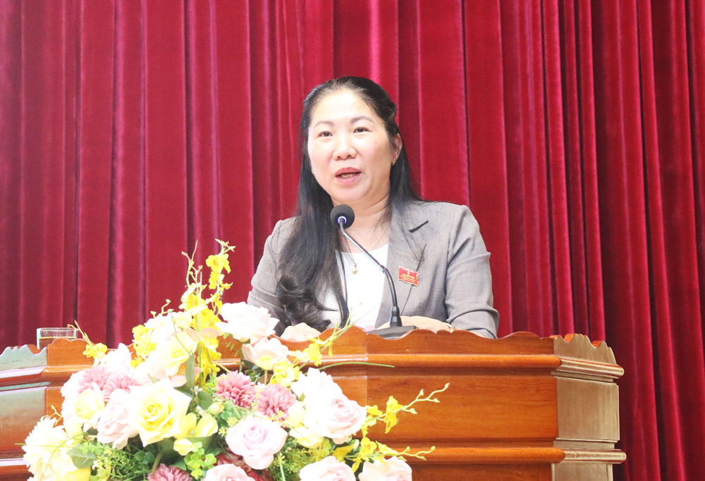 Bà Nguyễn Thị Thủy, Phó Trưởng Ban Pháp chế HĐND tỉnh tiếp thu, làm rõ một số ý kiến của cử tri.